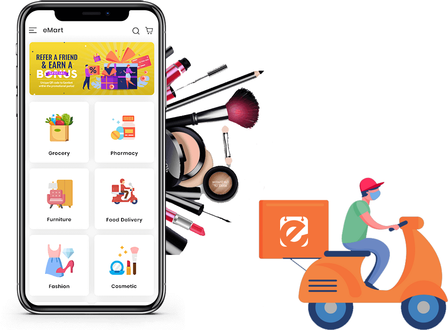 eMart is built to provide easy access to Groceries, Medicines, Furniture, Food, Clothes, and Comestics all inside one app. This app gives users the freedom to purchase goods & services Anytime, Anywhere, with fast shipping.